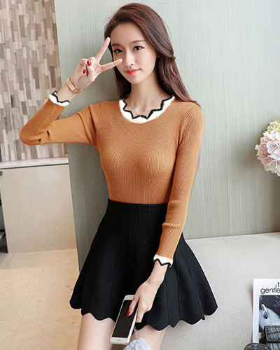 Áo Daisy Cổ Răng Cưa Phối Viền Màu Cam Đất