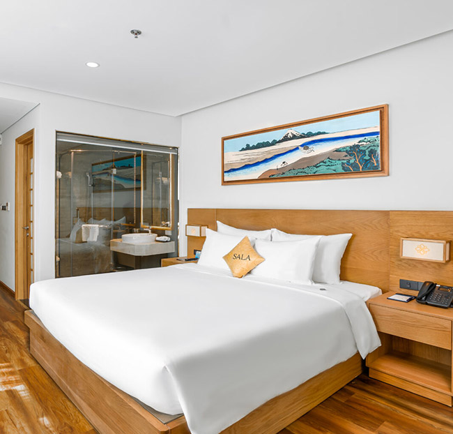 + Sala Suite (Giường tròn, quang cảnh biển, có ban công và bồn tắm hình tròn) : 1.800.000/ voucher / 2 đêm