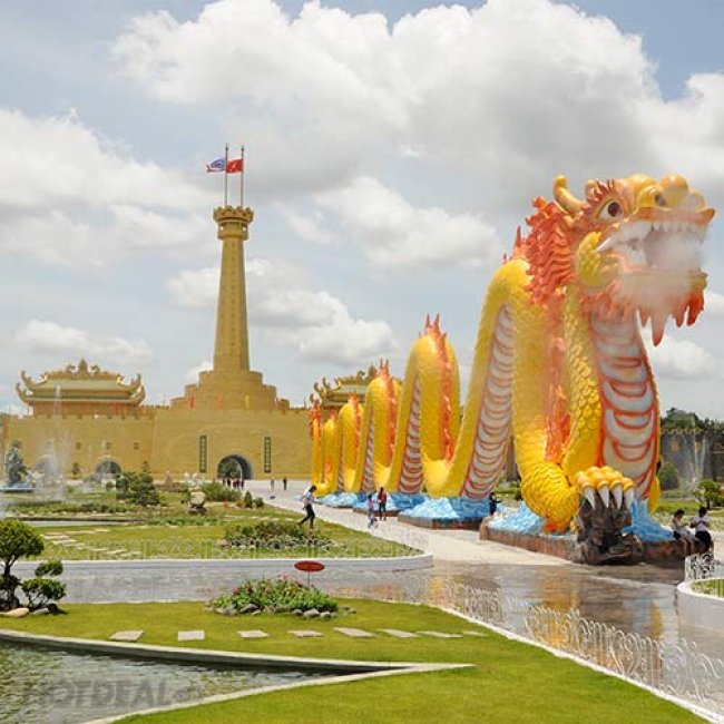 Tọa lạc phường Hiệp An, TP. Thủ Dầu Một với diện tích lên đến 700ha, Khu du lịch Đại Nam – Lạc Cảnh Đại Nam Văn Hiến là điểm hết hấp dẫn cho du khách khắp nơi với những cảnh đẹp mê hồn và những công trình vĩ đại đậm chất văn hóa Việt Nam. Khu du lịch Đại Nam với quần thể những hạng mục công trình lớn như đền thờ, tường thành, khách sạn, núi non, sông biển, vườn bách thú, khu vui chơi giải trí, quảng trường,… không chỉ là nơi để du khách thư giãn giải trí mà còn giúp nuôi dưỡng tình yêu với thiên nhiên, với văn hóa Việt Nam.