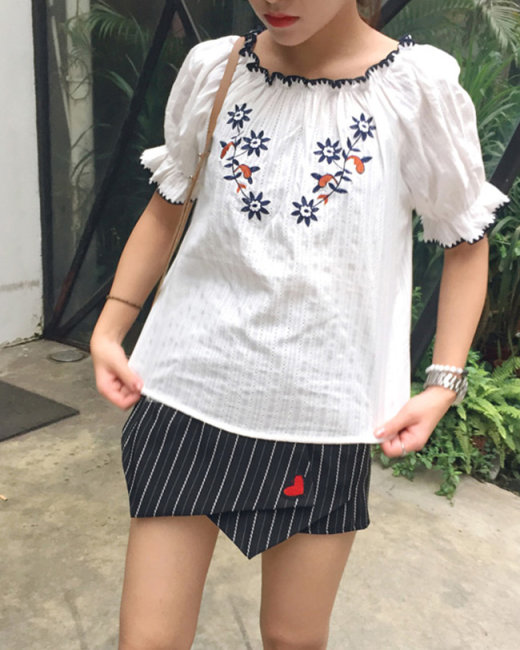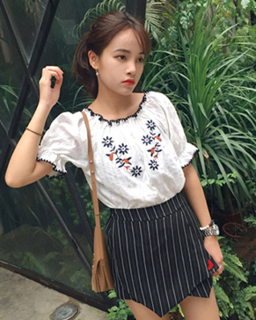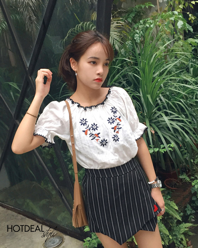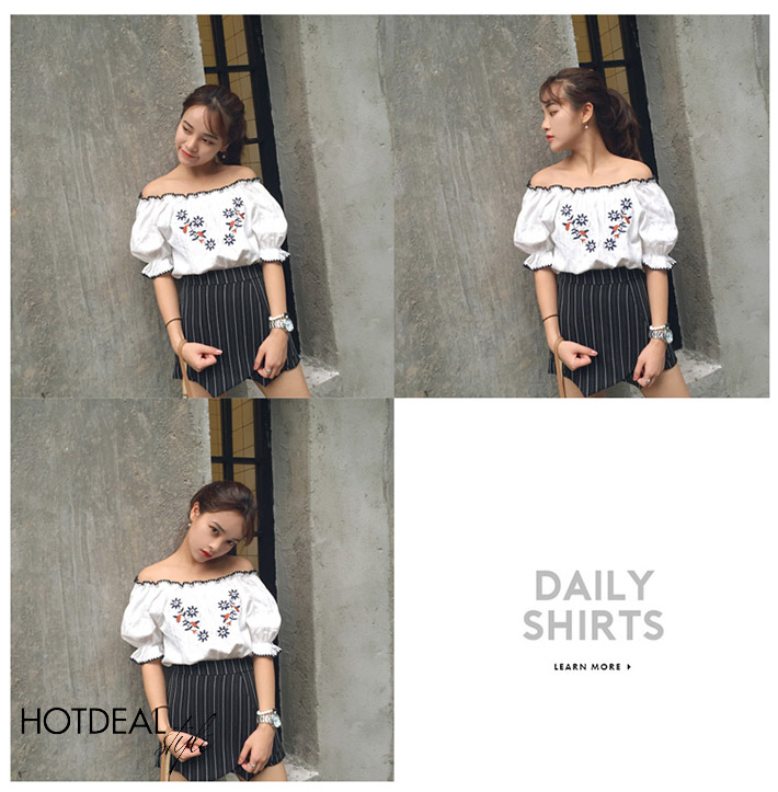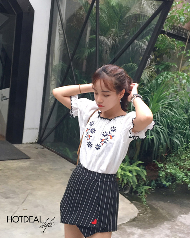 Áo Bẹt Vai Nữ Thêu Hoa Xinh Xắn