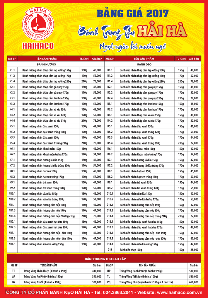 - Áp dụng cho: Tất cả các loại Bánh Trung Thu Hải Hà có trong bảng giá