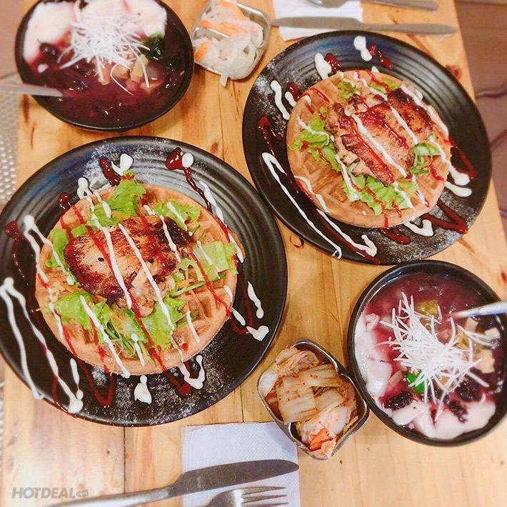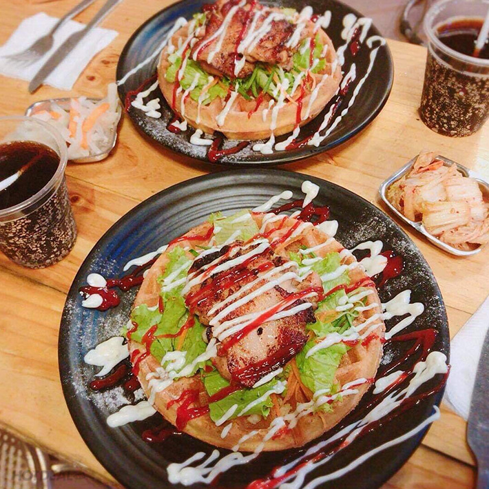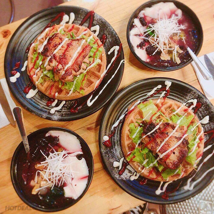 Combo Bánh Waffle: 2 Bánh Waffle Gà Rô Ti + Rau Trộn Tại HAT House