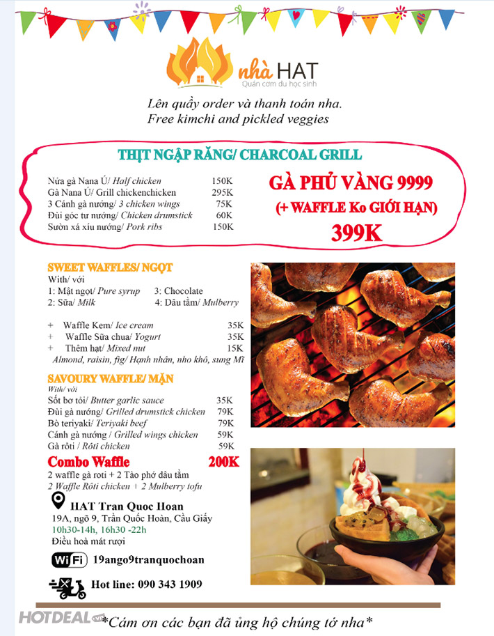 Combo Bánh Waffle: 2 Bánh Waffle Gà Rô Ti + Rau Trộn Tại HAT House. Voucher 158,000 VNĐ, Còn 110,000 VNĐ, Giảm 30%. Chỉ Có Tại Hotdeal.vn!