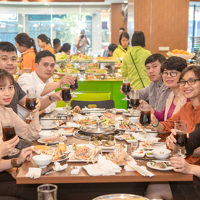 - Là nhà hàng Buffet hải sản đi đầu ở Hà Nội dùng hình thức nuôi bể tất cả các loại hải sản để thực khách được thấy, được chọn và tận mắt chứng kiến khâu chế biến cũng như an tâm khi thưởng thức món tươi ngon, cực phẩm.