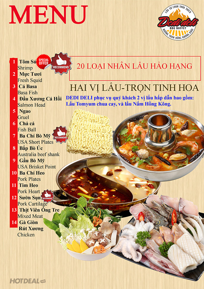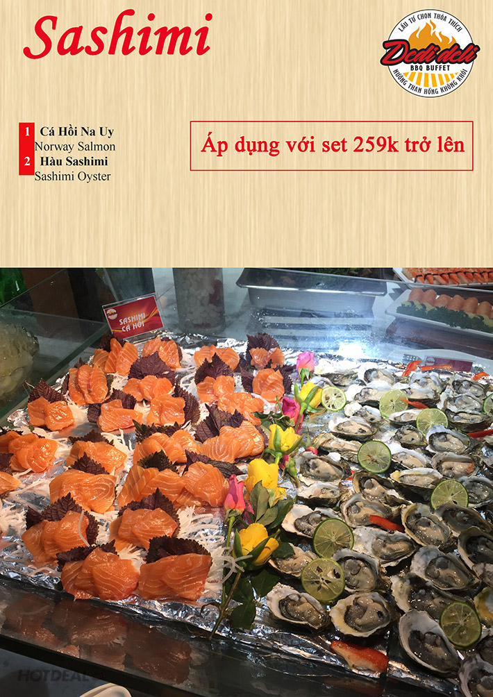 Dedi Deli Buffet Nướng Lẩu Hải Sản Free Coca Chỉ Còn 238K. Voucher 279,000 VNĐ, Còn 238,000 VNĐ, Giảm 15%. Chỉ Có Tại Hotdeal.vn!