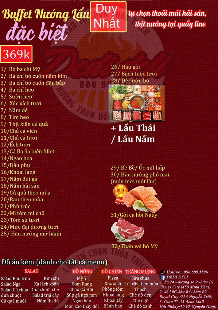 Dedi Deli Buffet Nướng Lẩu Hải Sản Free Coca Chỉ Còn 238K