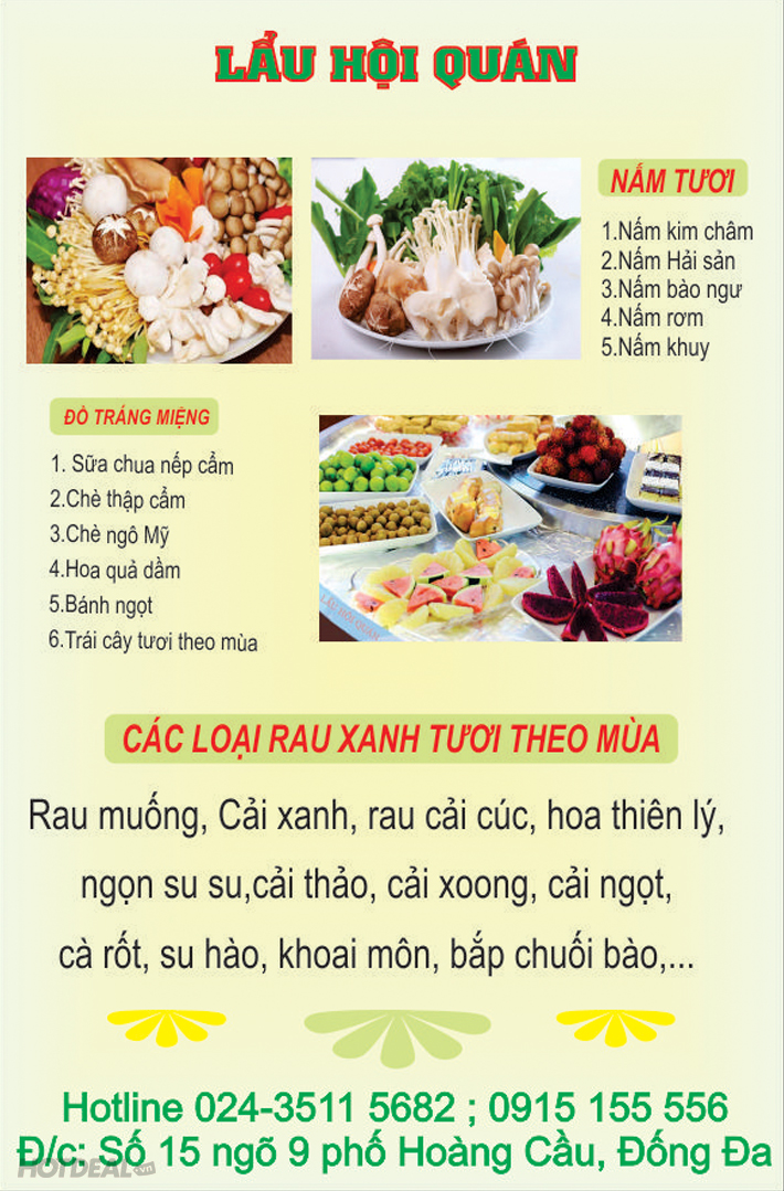 Buffet Nướng Tự Chọn - Nhà Hàng Lẩu Hội Quán Cơ Sở Mới Tại Hoàng Cầu. . Voucher 219,000 VNĐ, Còn 129,000 VNĐ, Giảm 41%. Chỉ Có Tại Hotdeal.vn!