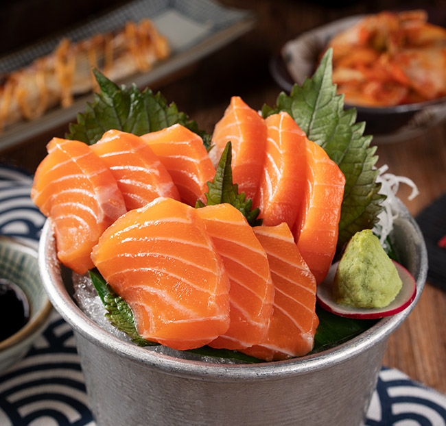 + Sashimi tươi mọng, bổ dưỡng được thưởng thức không giới hạn cùng đa dạng các món sushi như: Sushi da cá hồi chiên, Maki trứng tôm đỏ, Sushi ruốc cá hồi vừng đen…