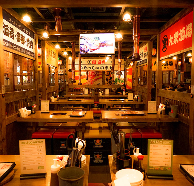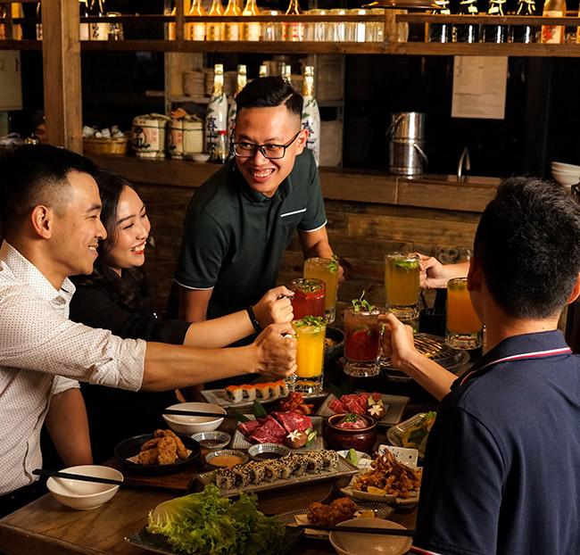- Không gian nhộn nhịp, phóng khoáng mang đậm tinh thần Izakaya mang đến bầu không khí vui tươi, thoải mái ngập tràn.