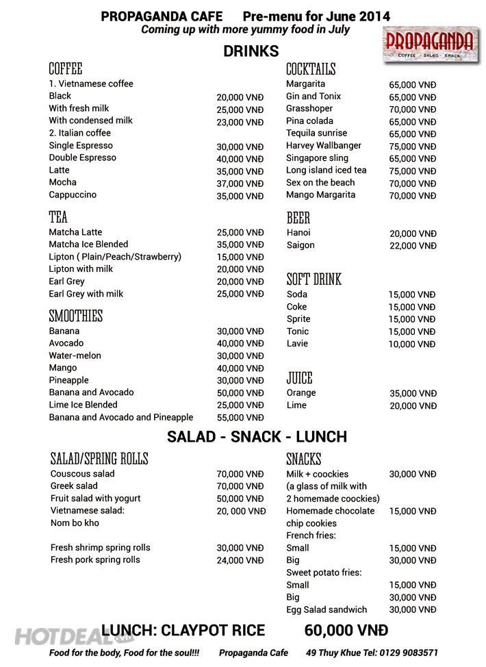 Propaganda Café, Thưởng Thức Set Ăn 2 Người Kèm Đồ Uống Thơm Ngon, Bổ Dưỡng. Voucher 130,000 VNĐ, Còn 72,000 VNĐ, Giảm 45%. Chỉ Có Tại Hotdeal.vn!