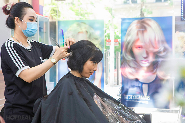 Combo Cắt, Gội, Sấy Tạo Kiểu, Hấp Phục Hồi Dành Cho Nữ Tại Hair Salon Nhung Blue. Voucher 450,000 VNĐ, Còn 350,000 VNĐ, Giảm 22%. Chỉ Có Tại Hotdeal.vn!