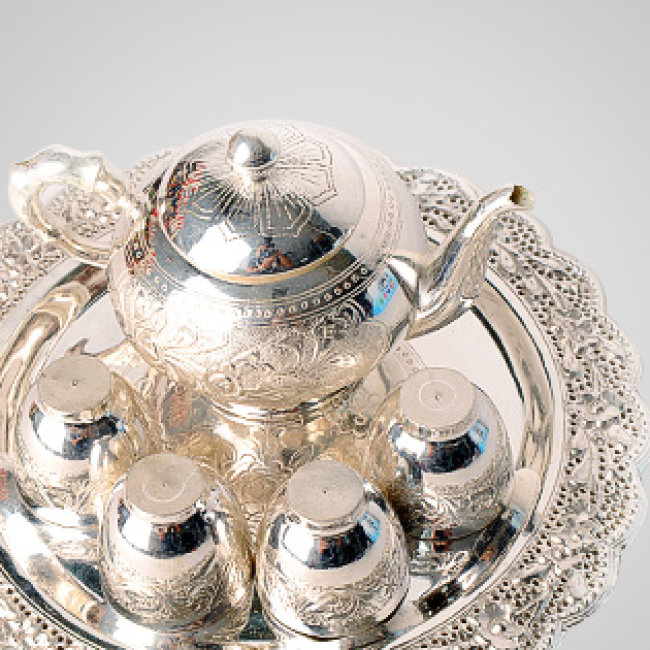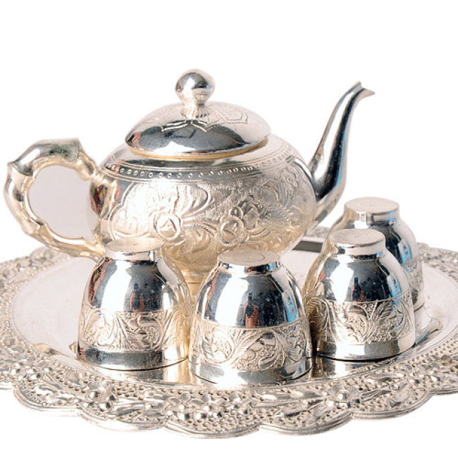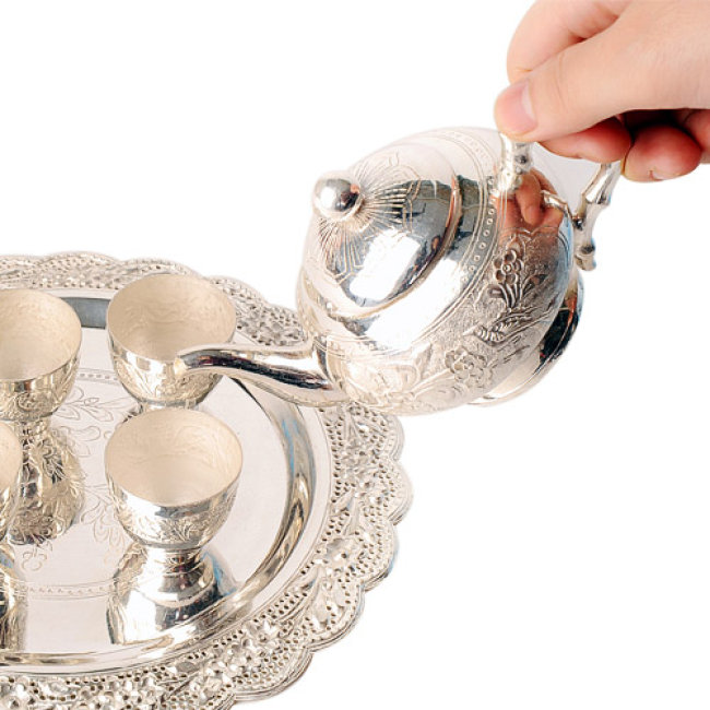 Bộ Ấm Chén Đồng Tráng Bạc Sang Trọng