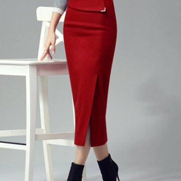 Chân Váy Dài Body Ôm Xẻ Vạt - Đỏ