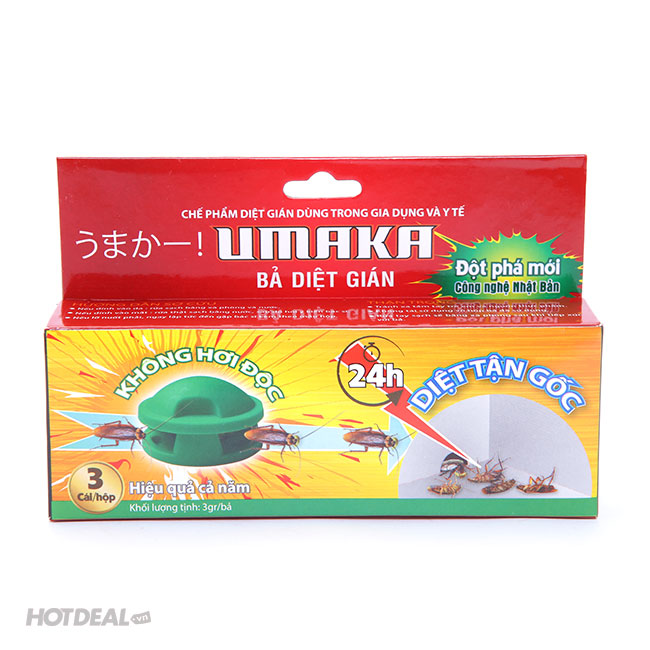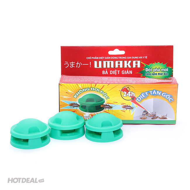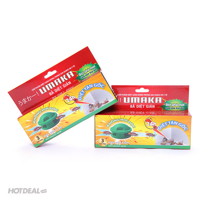 Combo 02 Hộp Bả DIệt Gián Umaka 3C Gồm Các Loại Thực Phẩm Tươi Sống Có Pha Hoạt Chất Diệt Gián – Gói Gọn Trong Cái Bánh. Giá 150,000 VNĐ, Còn 109,000 VNĐ, Giảm 27%. Chỉ Có Tại Hotdeal.vn!