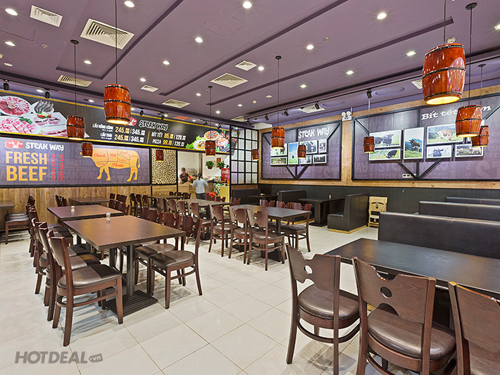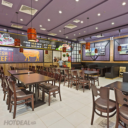 Combo Bò Bít Tết Kèm Đồ Uống Cho 02 Người Tại Hệ Thống Nhà Hàng Steak Way - 3 Chi Nhánh. Voucher 218,000 VNĐ, Còn 169,000 VNĐ, Giảm 22%. Chỉ Có Tại Hotdeal.vn!