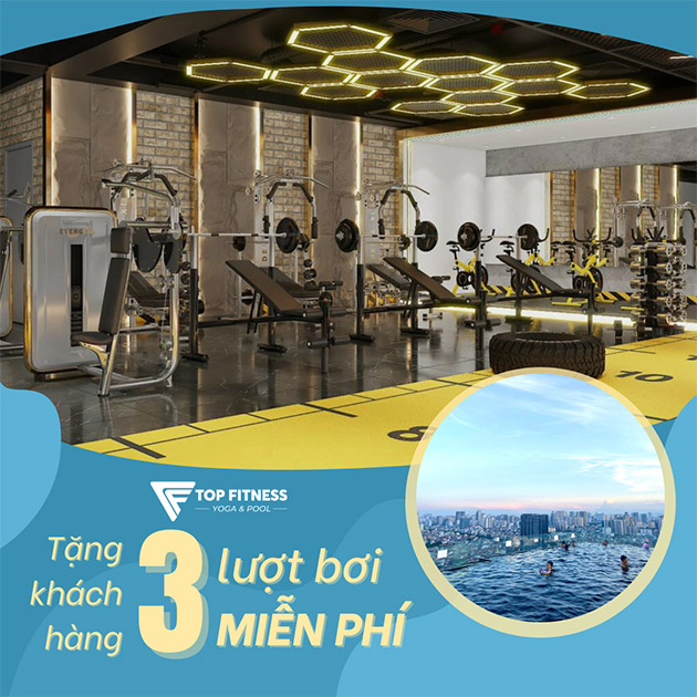 Top Fitness Yoga & Pool - 1 Tháng Tập Fitness - Tặng 3 Lượt Bơi. Voucher 3,500,000 VNĐ, Còn 399,000 VNĐ, Giảm 89%. Chỉ Có Tại Hotdeal.vn!