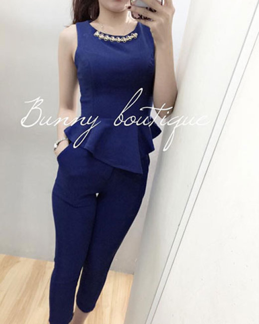 Set Áo Peplum Vạt Xéo + Quần Dài- Xanh