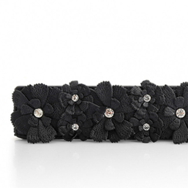 Dây Nịt Thun Hoa Simili - Đen