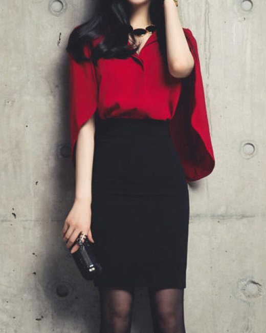 Set Chân Váy Đen + Áo Đỏ Yumi
