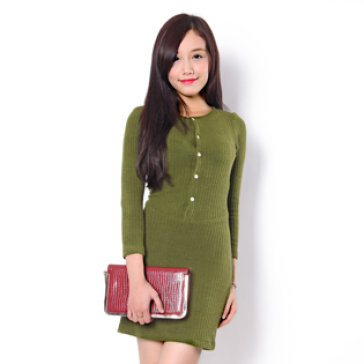 Đầm len body cúc - Xanh Rêu