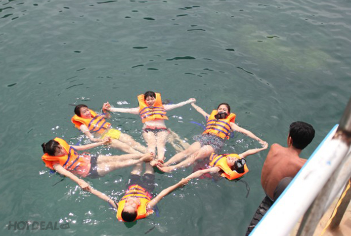 - Dừng tại 2 điểm có san hô đẹp lặn ngắm san hô với dụng cụ: kiếng lặn, ống thở và chân bơi. San hô, cá với đầy đủ màu sắc tại Mũi Kỳ Lân, Hòn Gỏi, Bãi Đá Trào.