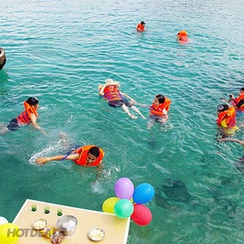 + Ăn uống: 3 buổi sáng (1 tô + 1 ly) và 04 buổi chính (1 buổi dùng cơm dân dã tại đảo Bình Ba và 2 buổi dùng cơm tại nhà hàng địa phương cơm phần 5, 6 món + 01 buổi trưa dùng cơm trên tàu: 01 phần thức ăn + 01 chai nước tinh khiết).