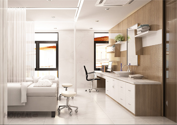 - Không gian được thiết kế với không gian sang trọng, tinh tế, tạo cảm giác thoải mái, thư giãn, giúp khách hàng an tâm tận hưởng không gian riêng tư cùng các dịch vụ chăm sóc da hiện đại.