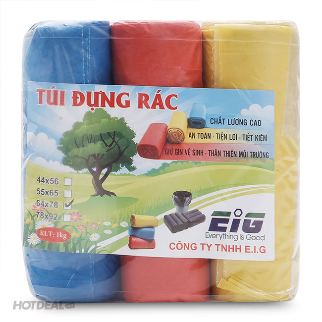 Combo 6 Cuộn Túi Rác Màu Eig Tự Phân Hủy (Loại Đại 64x78cm) - Chất Liệu Có Độ Co Giãn Tốt - Đáy Túi Dày, Kích Thước Rộng Rãi - Sản Phẩm Tiện Ích, Cần Thiết Cho Mọi Gia Đình. Giá 130,000 VNĐ, Còn 99,000 VNĐ, Giảm 24%. Chỉ Có Tại Hotdeal.vn!