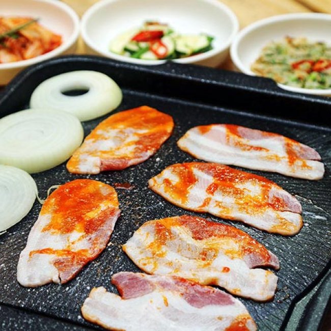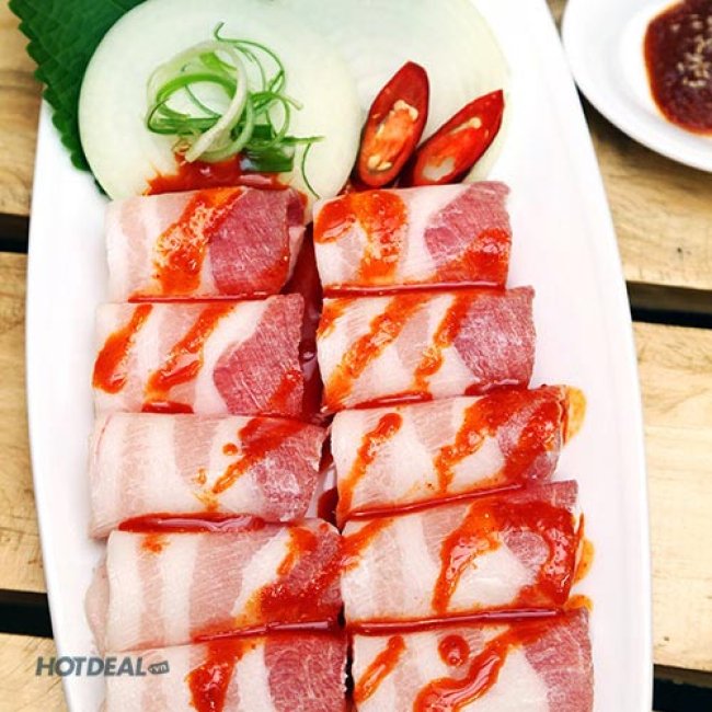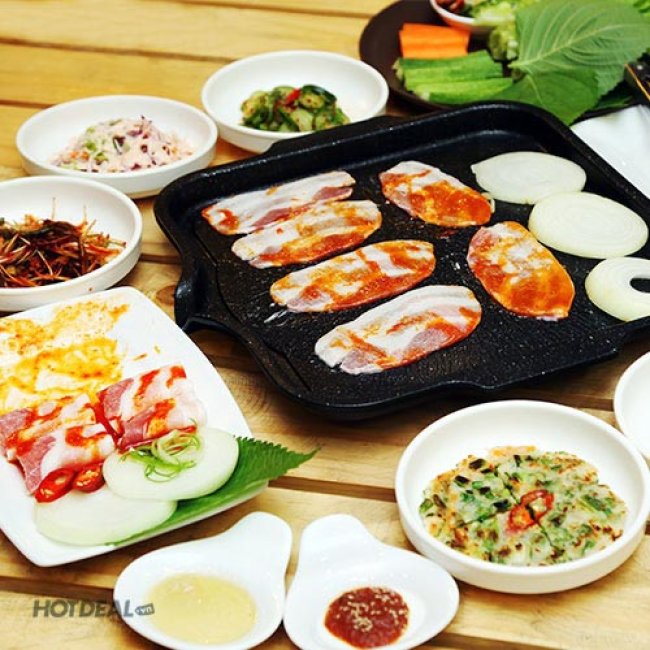 Thưởng Thức Combo Ba Rọi Heo Nướng Mọi/Nướng Cay/Nướng Tương Vàng + Rau Ăn Kèm Và 5 Món Phụ: Cá Cơm, Kim Chi, Bánh Xèo, Salad, Rau Củ Xào Tại Nhà Hàng Hàn Quốc Heo Đỏ. Voucher 88.000 VNĐ, Còn 53.000 VNĐ, Giảm 40%. Chỉ Có Tại Hotdeal.vn!