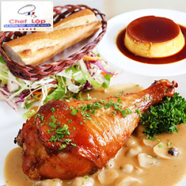 Combo 1 Phần Gà Nướng Kiểu Pháp + Cơm Hoặc Bánh Mỳ + Salad + 1 Dĩa Bánh Plan Dành Cho 1 Người Tại Chef Lập - Gà Nướng Pháp - Poulet De France. Giá 118.000 VNĐ, Còn 65.000 VNĐ, Giảm 45%. Chỉ Có Tại Hotdeal.vn!