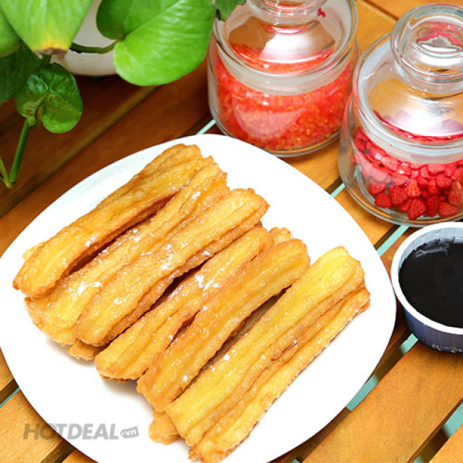 Combo 12 Thanh Churros Phủ Đường Quế Chấm Sốt Chocolate Tại Happy Baking Studio – Hương Vị Mới Lạ, Đặc Biệt Thơm Ngon. Voucher 100.000 VNĐ, Còn 49.000 VNĐ, Giảm 51%. Chỉ Có Tại Hotdeal.vn!