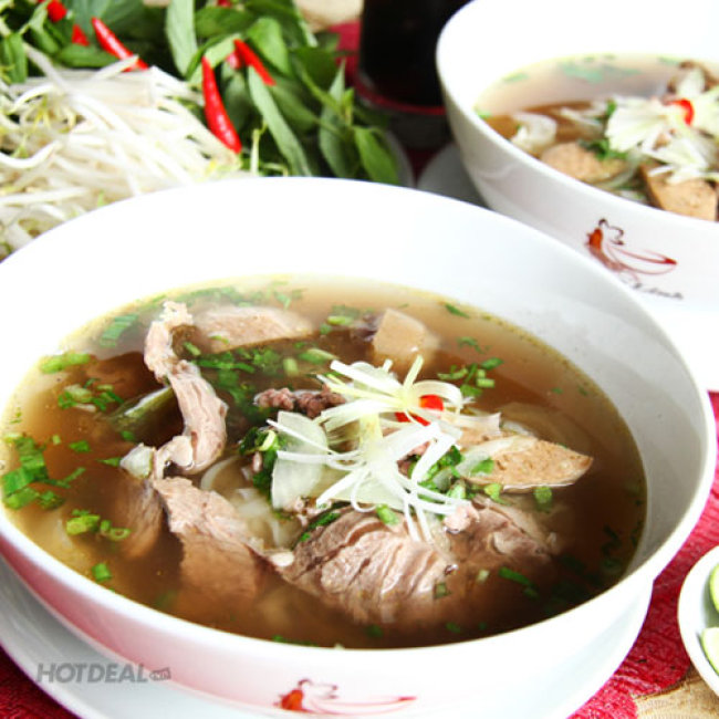 Một Lần Nữa Được Thưởng Thức Hương Vị Truyền Thống Đặc Sắc Từ Món Phở Với Combo 2 Tô Phở Bò Đặc Biệt + 2 Nước Tại Nhà Hàng Ngọc Linh. Voucher 100.000 VNĐ, Còn 59.000 VNĐ, Giảm 41%. Chỉ Có Tại Hotdeal.vn!
