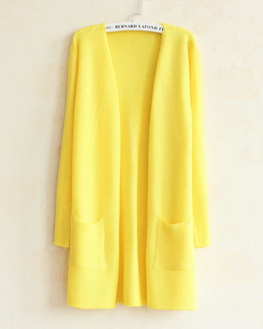 Áo Khoác Len Cardigan 2 Túi Màu Vàng