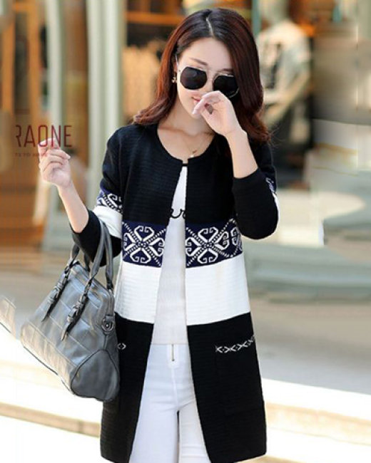 Áo Khoác Len Cardigan Thổ Cẩm Màu Đen