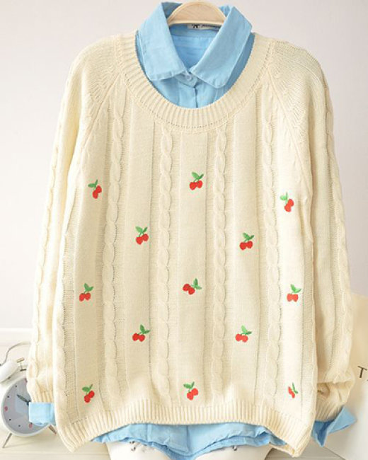 Áo Len Móc Vặn Thừng Cherry