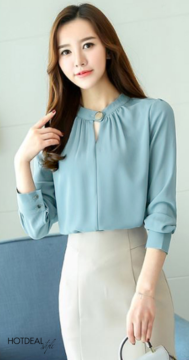 Áo Kiểu Phối Nút Thời Trang Màu Xanh Size M