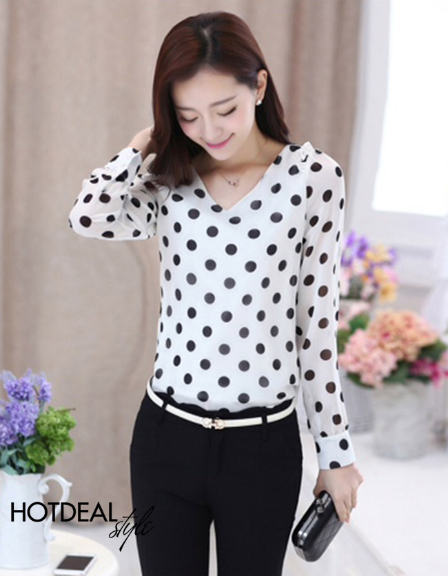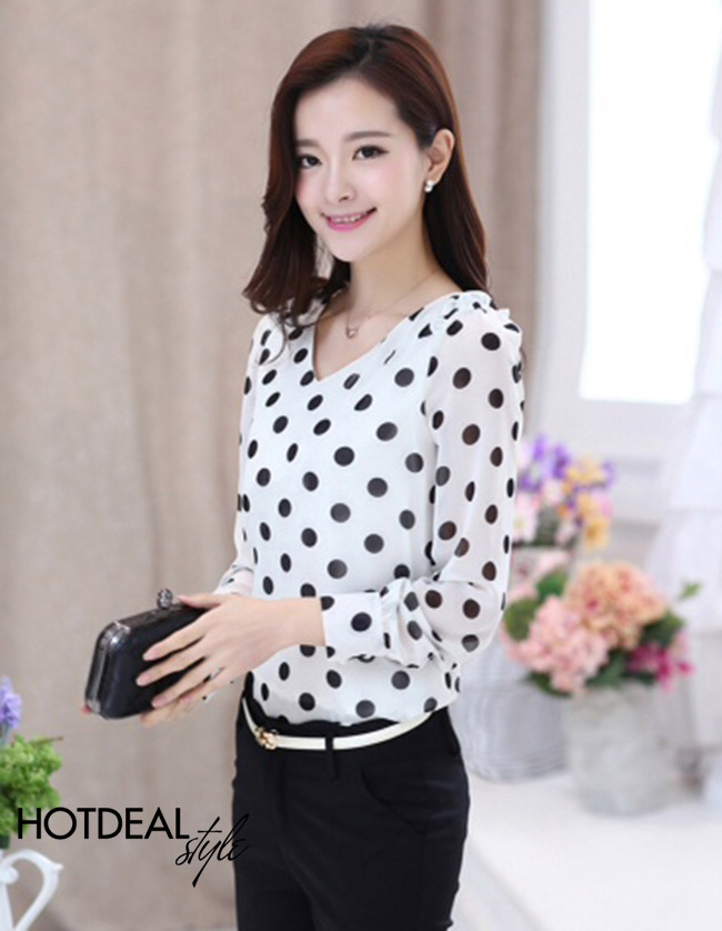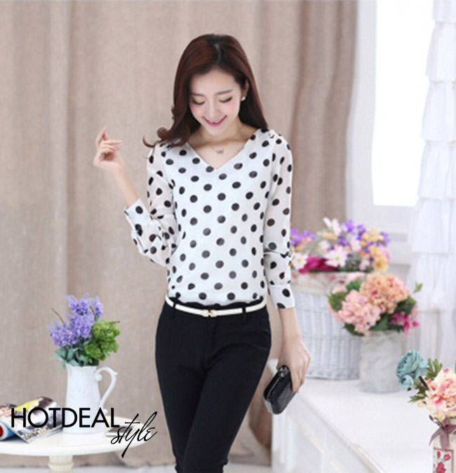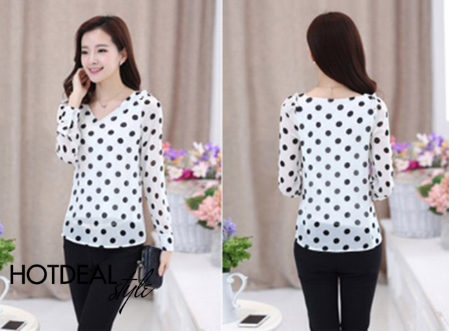 Áo Chấm Bi Cổ Tim Duyên Dáng - Chất Liệu Châu Tôn Mềm Mại, Kiểu Dáng Thanh Thoát, Họa Tiết Chấm Bi Ngọt Ngào – Trang Phục Lý Tưởng Cho Các Bạn Gái. Giá 189.000 VNĐ, Còn 125.000 VNĐ, Giảm 34%. Chỉ Có Tại Hotdeal.vn!. Giá 189,000 VNĐ, Còn 125,000 VNĐ, Giảm