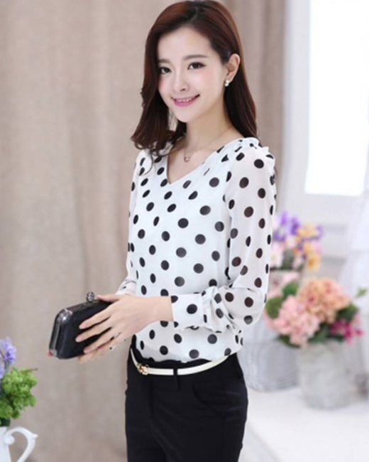 Áo Chấm Bi Cổ Tim Duyên Dáng