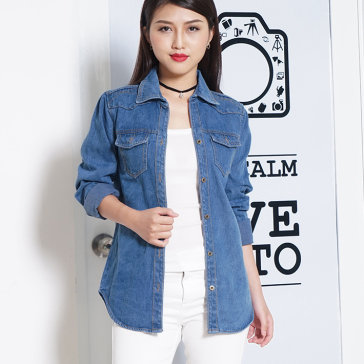 Áo Sơ Mi Jean Nữ 2 Túi Cá Tính Màu Xanh Nhạt
