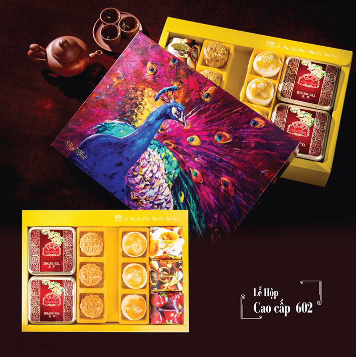 + Lễ hộp 602: 2 bánh trung thu Cầu Vồng 125g (1 nhân mặn, 1 nhân ngọt); 1 vỉ bánh Hồng Kông nhỏ; 1 vỉ bánh Quý phi Phù Dung; 3 bánh tô 48g.