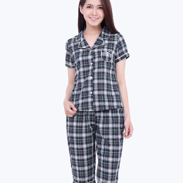 Đồ Bộ Lửng Pijama Sọc Caro Twins Xanh Dương