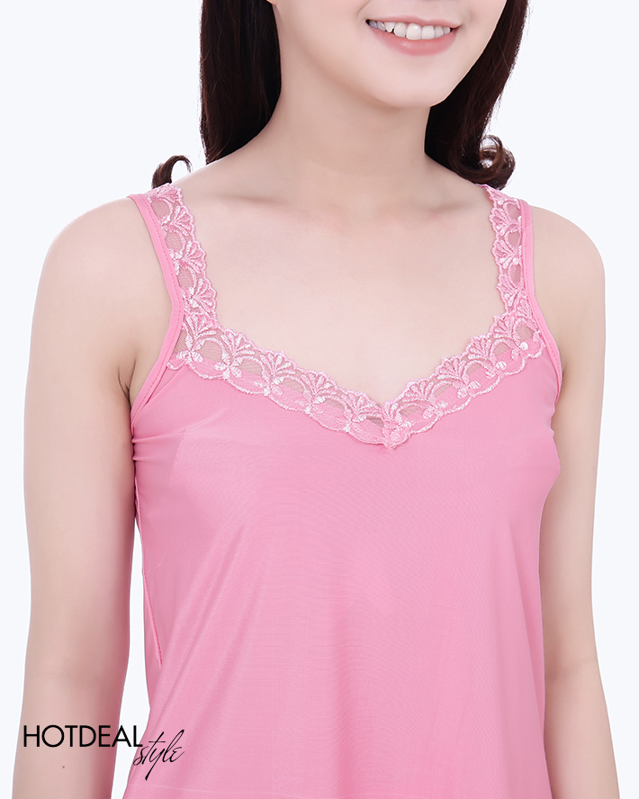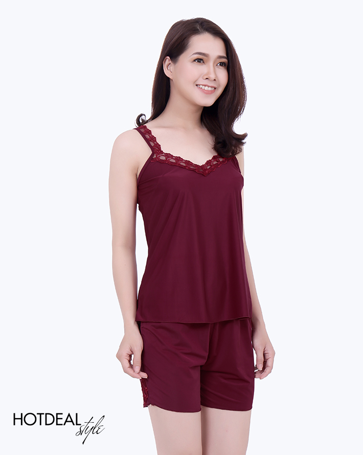 Bộ Đồ Mặc Nhà 2 Dây Viền Ren – Kiểu Áo Cổ Tim, Quần Short Lưng Thun Vừa Năng Động, Vừa Gợi Cảm – Chất Liệu Thun Lạnh Mát Mẻ. Giá 110,000 VNĐ, Còn 79,000 VNĐ, Giảm 28%. Chỉ Có Tại Hotdeal.vn!