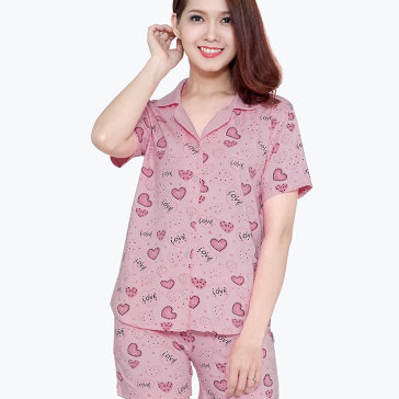 Bộ Đồ Mặc Nhà Pijama Trái Tim Màu Hồng