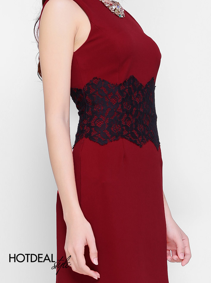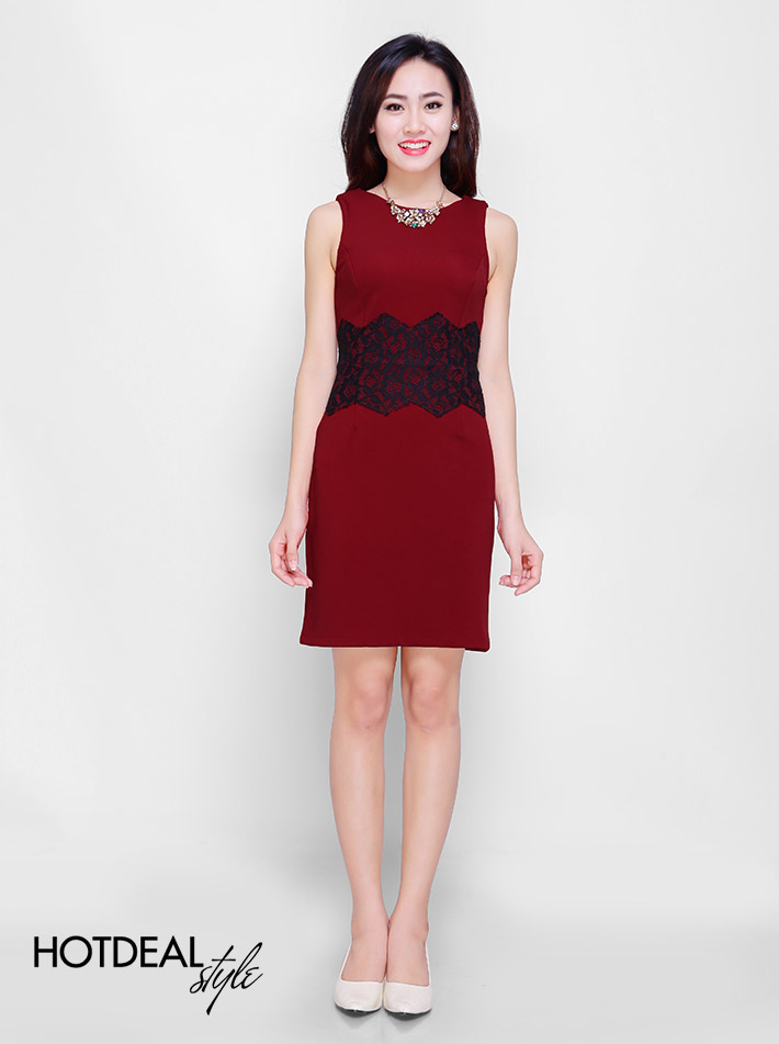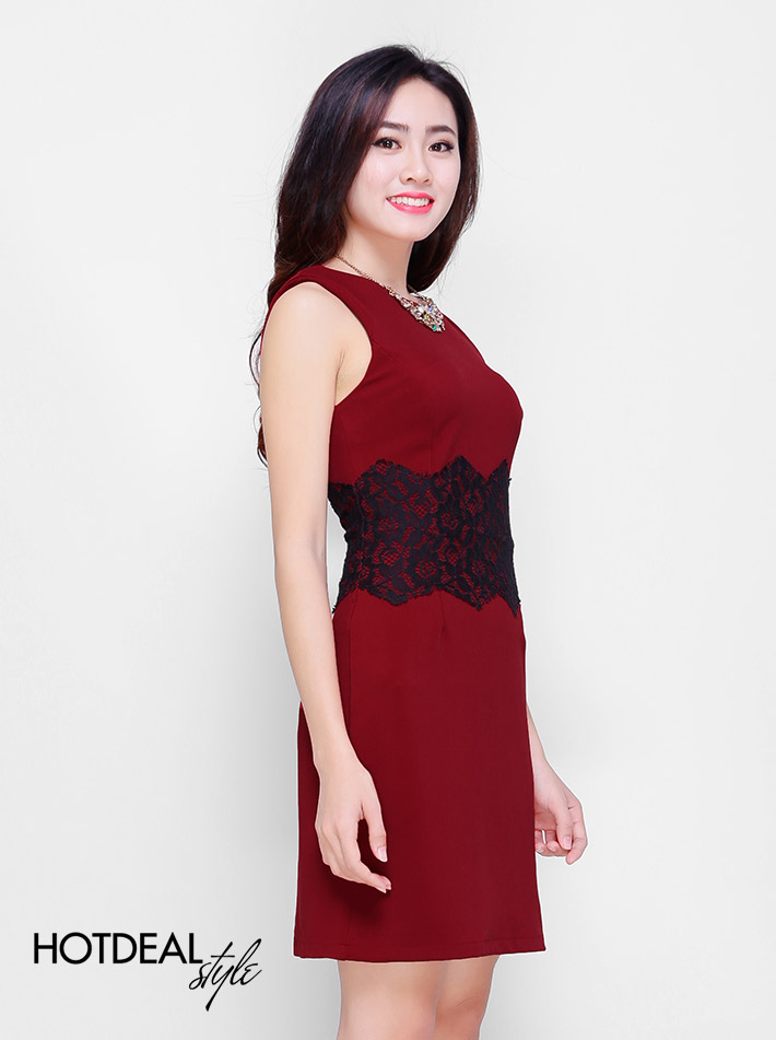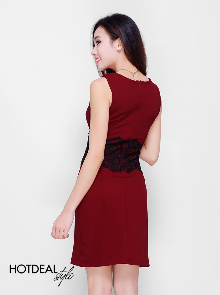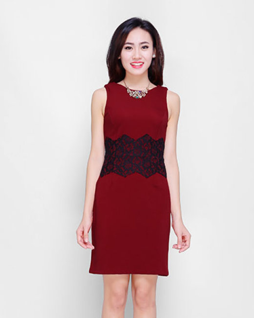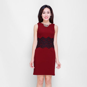 Đầm Body Phối Ren Eo Màu Đỏ Đô
