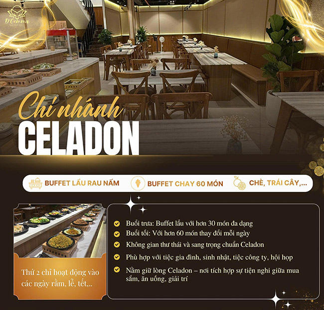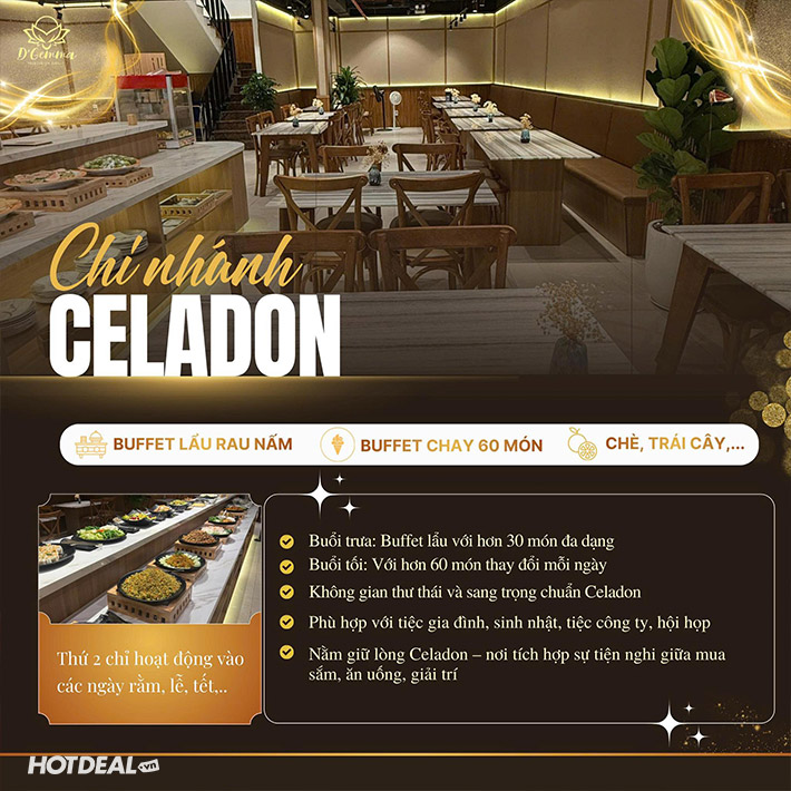 DGemma Celadon - Buffet Chay Trưa/ Tối Hơn 60 Món Tinh Túy. Voucher 139,000 VNĐ, Còn 119,000 VNĐ, Giảm 14%. Chỉ Có Tại Hotdeal.vn!