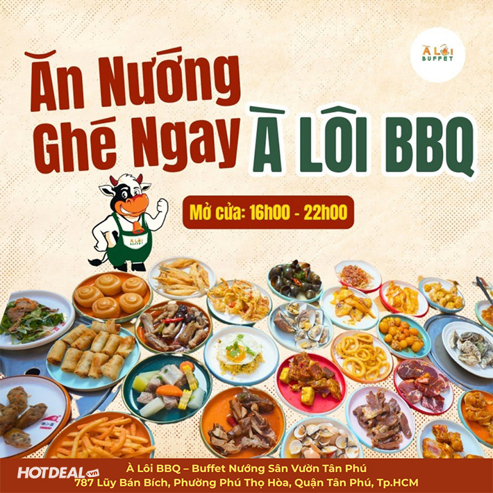 À Lôi BBQ - Buffet Nướng Hải Sản, Tôm Càng Vớt Hồ Không Giới Hạn. Voucher 218,000 VNĐ, Còn 169,000 VNĐ, Giảm 22%. Chỉ Có Tại Hotdeal.vn!