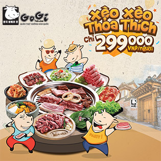 - Áp dụng cho Buffet Xèo Xèo nướng và lẩu thỏa thích tại GoGi House.