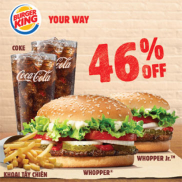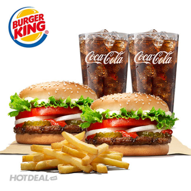 Thưởng Thức Hương Vị Burger Trứ Danh 100% Thịt Bò Từ Úc Với Combo Nổi Tiếng Cho 2 Người - Áp Dụng Toàn Quốc Tại Burger King. Voucher 185.000 VNĐ, Còn 99.000 VNĐ, Giảm 46%. Chỉ Có Tại Hotdeal.vn!