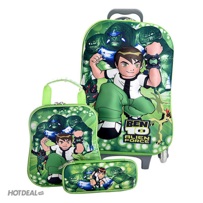 Bộ Vali Kéo + Cặp Đeo + Hộp Bút 3D Cho Bé - Mẫu Ben 10