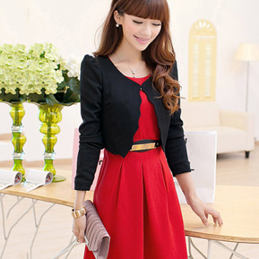 Đầm Xòe Màu Đỏ Kèm Áo Khoác Lửng Màu Đen
